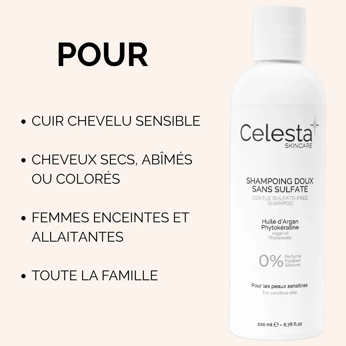 - L’avantage Celesta Skincare : Le sans-sulfate qui mousse généreusement, efficacité sans compromis sur la tolérance